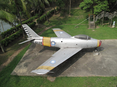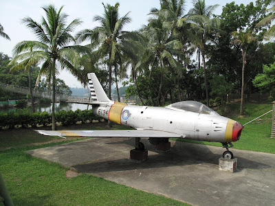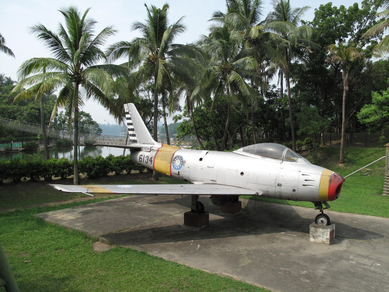 這架F86F陳列在澄清湖青年活動中心,雖然有些破損,跟之前放在台大的F100比情況還算ok,可以想像現在被當成寶的F16或幻象終有一天也會被拉到公園成為大型玩具。
