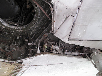 機輪艙裡面的管線,只能說修飛機的地勤人員很了不起。