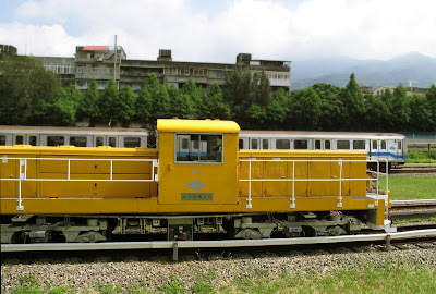 搭淡水線過復興崗站向左邊看可看見這幾隻黃色長得像早期台鐵柴液機車頭的不明機車。